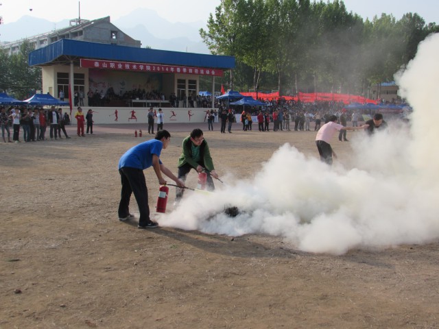 4月24日,泰山职业技术学院春季运动会在学院运动场举行,下午4点30分整,随着发令员一声令下,11支志愿者消防队伍先后展开了激烈的角逐。运动会现场,参赛队员本着友谊第一、比赛第二的原则,你争我夺,奋勇拼搏。在灭火器灭火比赛中,参赛队员以熟练的动作和最快速度把火熄灭,“火灾”现场,赢得了评委及观众们的充分肯定。项目过后,参赛队员还相互交流操作技巧和心得体会,实现了赛训有效结合,增强了参赛选手的消防业务技能,使活动收到了积极的效果。