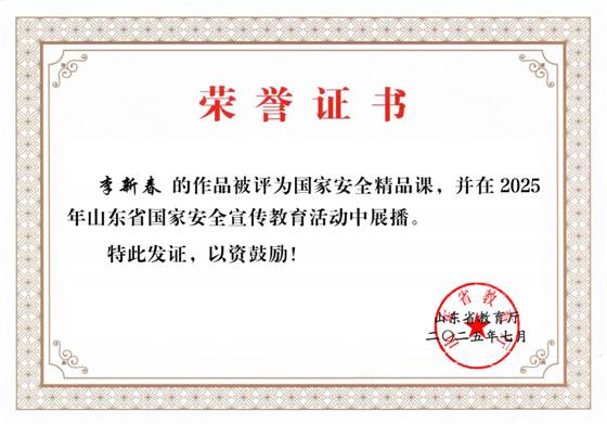 为深入贯彻落实总体国家安全观,增强广大师生国家安全意识,我校参加山东省教育厅组织开展的2025年国家安全宣传教育系列活动中获得优异成绩。