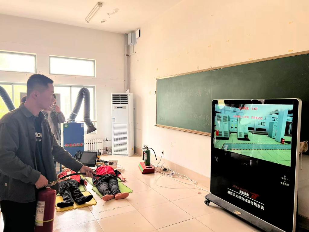 安全教员李老师结合实验室智能设备讲解了灭火器的使用方法,重点强调"压力表、软管及喷管前端"三项关键指标开展设备检查,详细示范了"提、拔、握、压"四步操作法。现场指导学生运用虚拟灭火综合传真设备及智能化考培系统模拟灭火器的选择和使用,细化教室、实验室等多场景火灾状态下的灭火方法。