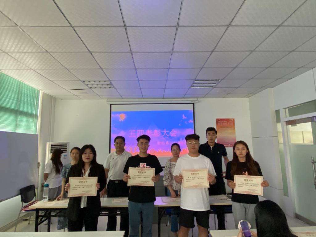 为了庆祝光荣的中国共青团成立99周年,纪念五四运动102周年,2021年6月3日下午4:00,财经系在实训楼行动学习室召开五四表彰大会,会议由团总支老师安然主持,财经系主任李金伟及团总支老师李芬老师、曾桂梅老师出席本次会议,全体获奖学生参加。