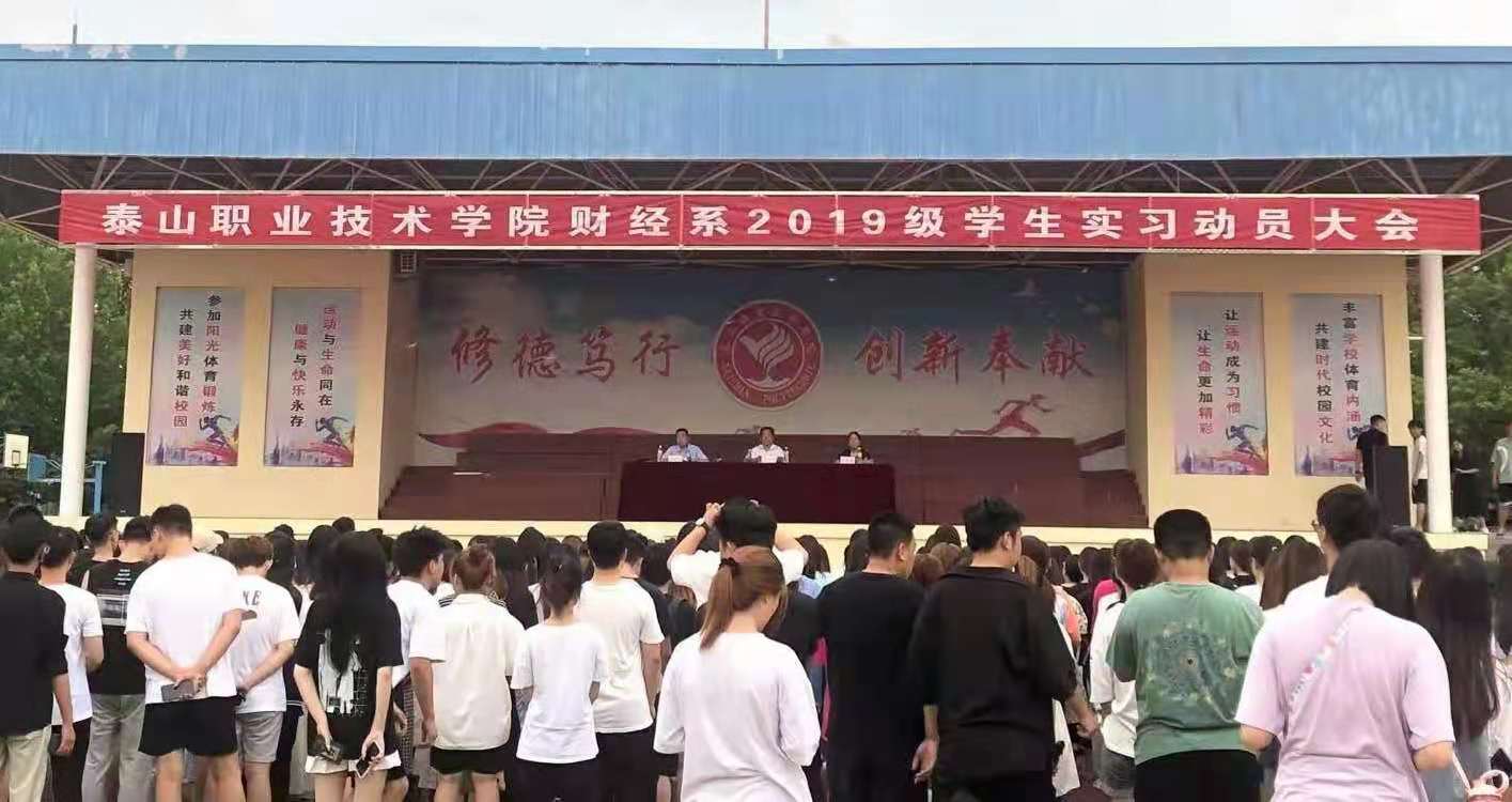 2021年7月1日下午,财经系在学院操场召开2019级实习动员大会,财经系系李金伟主任在动员大会上进行动员讲话,分管主任、班主任及全体学生参加。