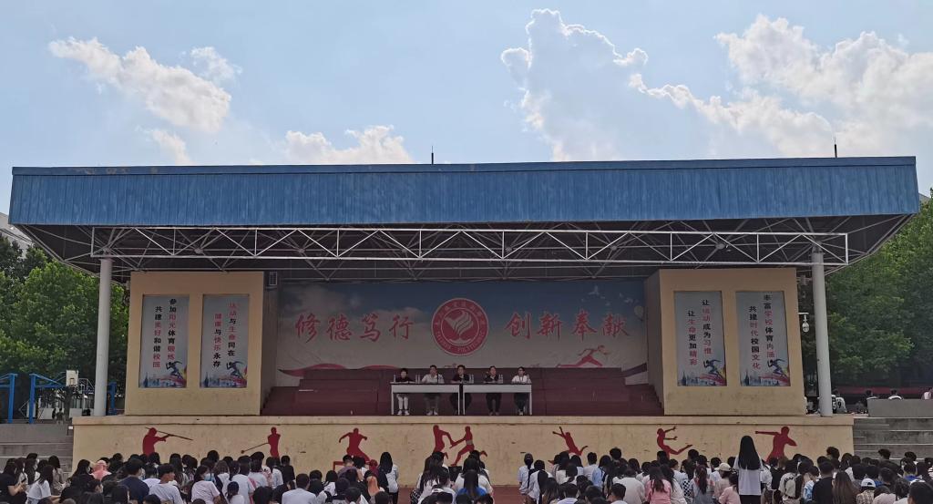 为了做好2023届毕业生实习管理工作,6月14日下午,财经系在体育场召开了实习动员大会。财经系主任李金伟、副主任张建明、副主任王桂珍、教学科科长陈卫华、学生科副科长路伟及财经系2020级全体学生和班主任参加了此次动员大会。