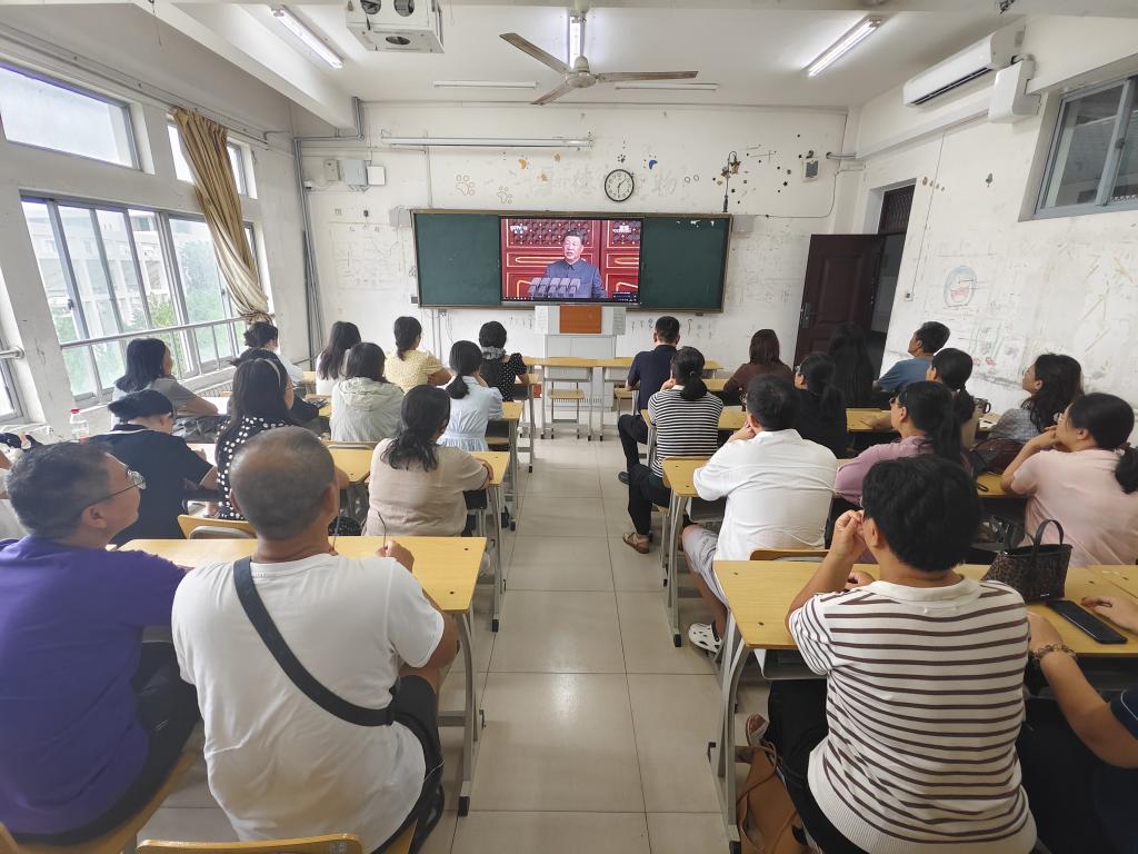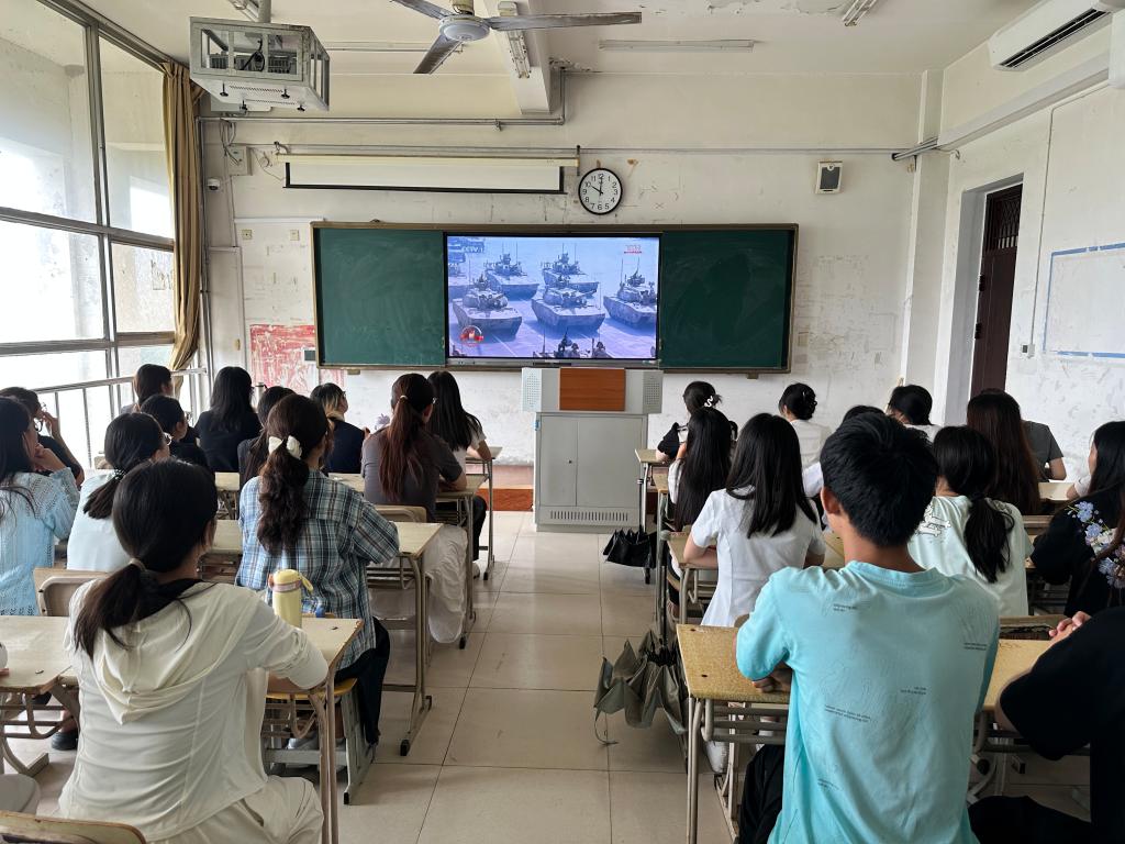 中共中央总书记、国家主席、中央军委主席习近平发表重要讲话并检阅部队。总书记指出,纪念中国人民抗日战争暨世界反法西斯战争胜利80周年,就是要铭记历史、缅怀先烈、珍爱和平、开创未来。全国各族人民要在中国共产党坚强领导下,为全面推进强国建设、民族复兴伟业而团结奋斗!上午10点,盛大的阅兵式正式开始。北京天安门广场礼炮齐鸣、红旗飞扬。随着庄严的国歌声响起,全体师生肃穆起立、共唱国歌。雄浑壮丽的进行曲、铿锵有力的步伐、先进精良的武器装备,无不让大家热血沸腾、激情澎湃,现场不时响起阵阵掌声。