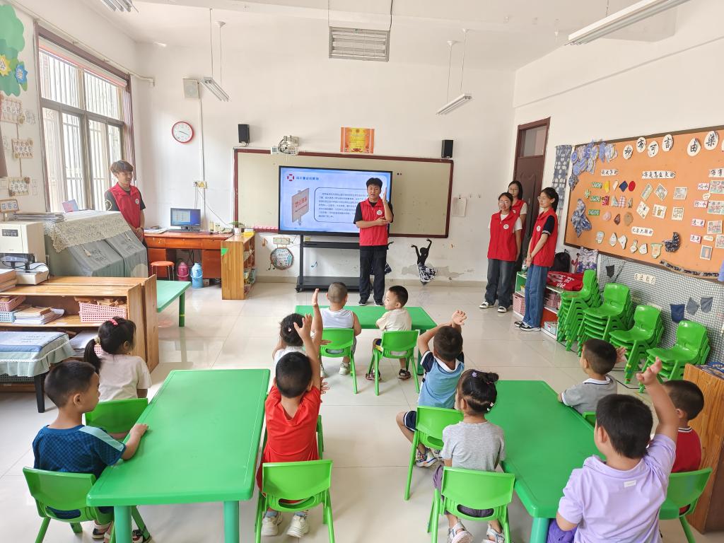 暑期“三下乡”社会实践活动是学生成长成才的重要平台,为进一步增强学生们的服务意识和奉献精神,2024年8月6日,财经系团总支副书记安然带领财经系志愿服务队到泰安市新庄村幼儿园开展暑期“三下乡”社会实践活动。