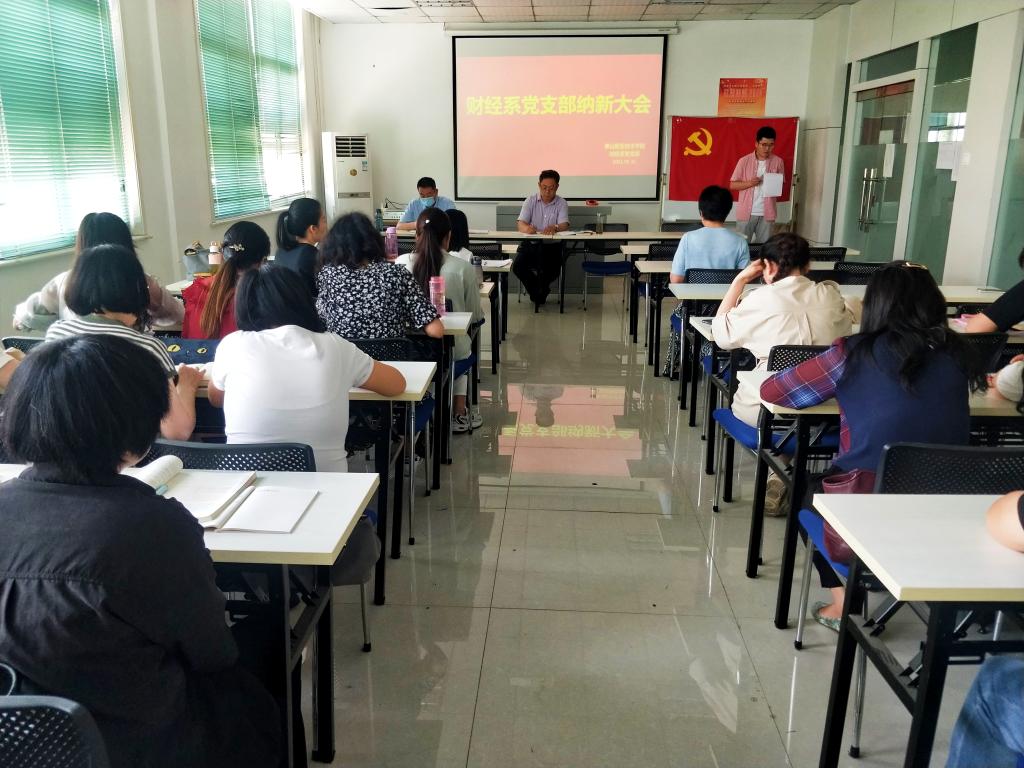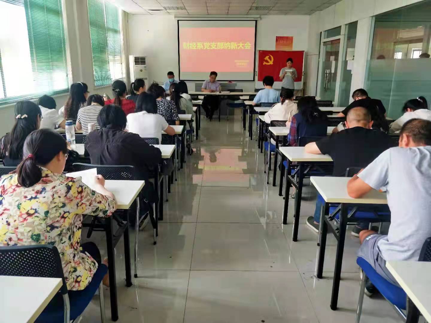 2021年5月31日下午1点30分,在居正楼行动学习室,财经系党支部召开2021年党员纳新大会,讨论丁罗亚、贾亚萍等十五位同志的纳新问题。会议由财经系党支部书记李金伟主持,全体党员及党员发展对象参加。