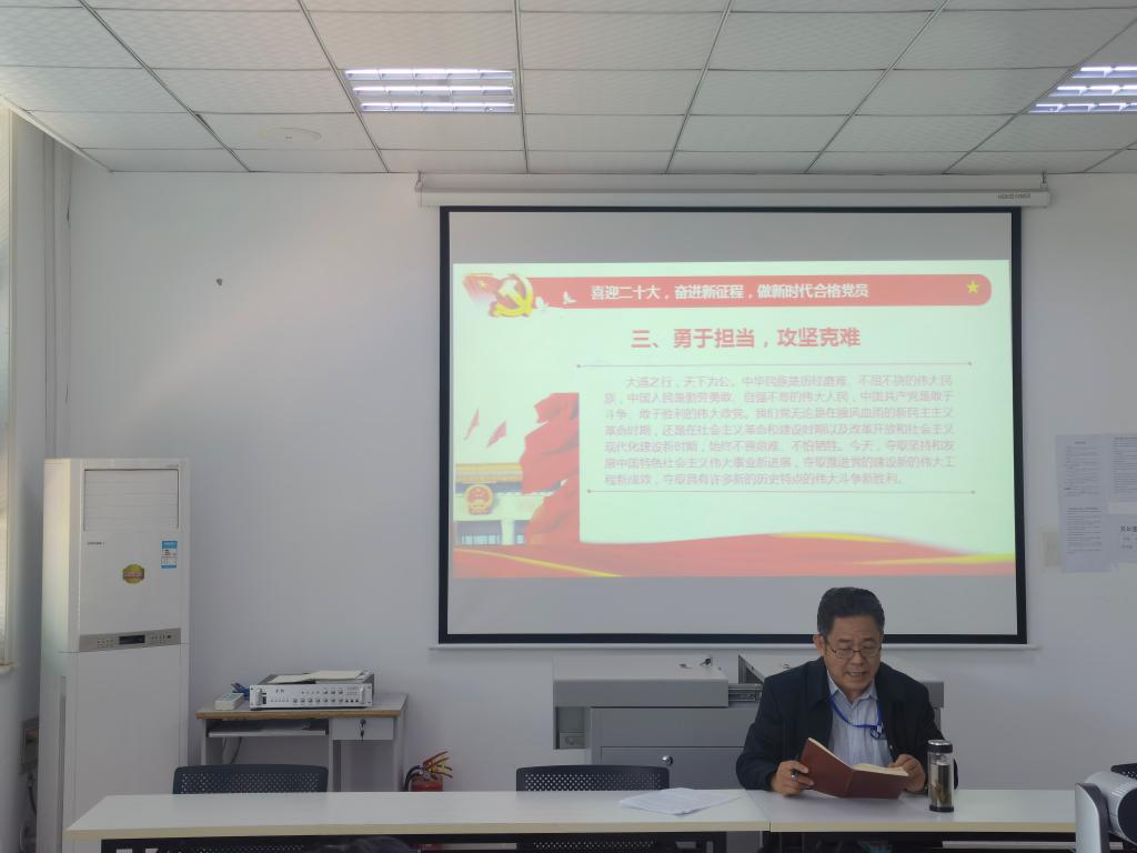 为迎接党的二十大胜利召开,财经系党总支于2022年5月17日下午在居正楼行动学习室召开主题教育活动,由财经系党总支副书记李金伟主讲一堂生动党课,教师党支部书记张建明、学生党支部副书记路伟及广大教师党员参加。