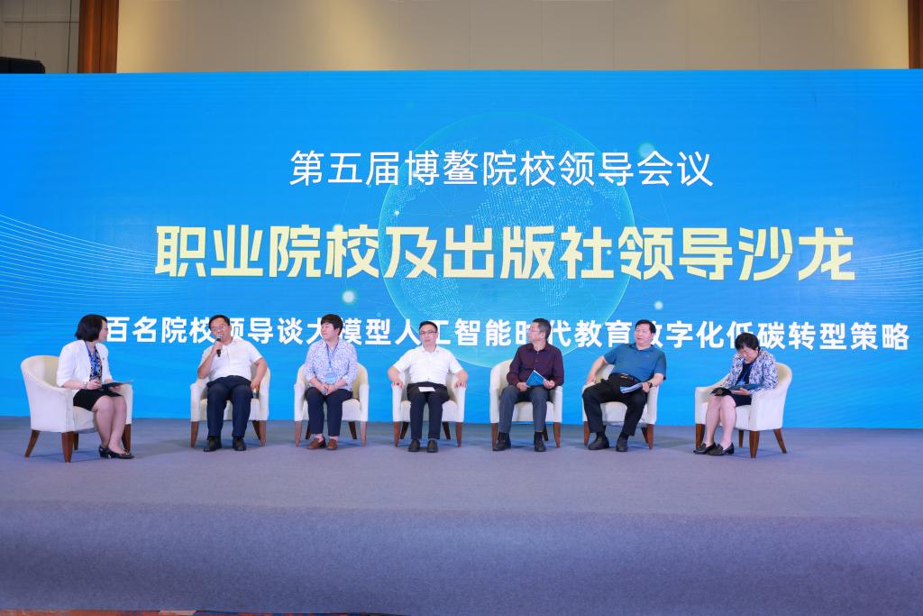 为深化实施教育数字化战略行动,一体推进资源数字化、管理智能化、成长个性化、学习社会化,让优质资源可复制、可传播、可分享,让大规模个性化教育成为可能。2024年2月21至22日,第五届博鳌院校领导会议暨百名院校领导谈大模型人工智能时代教育数智化低碳转型策略研讨会在海南博鳌召开。学院党委副书记、院长崔耕虎,党委委员、科研处处长赵京岚受邀参会,会议分专家讲座、沙龙研讨和新品发布三个阶段进行,崔耕虎受邀参加校长沙龙研讨。