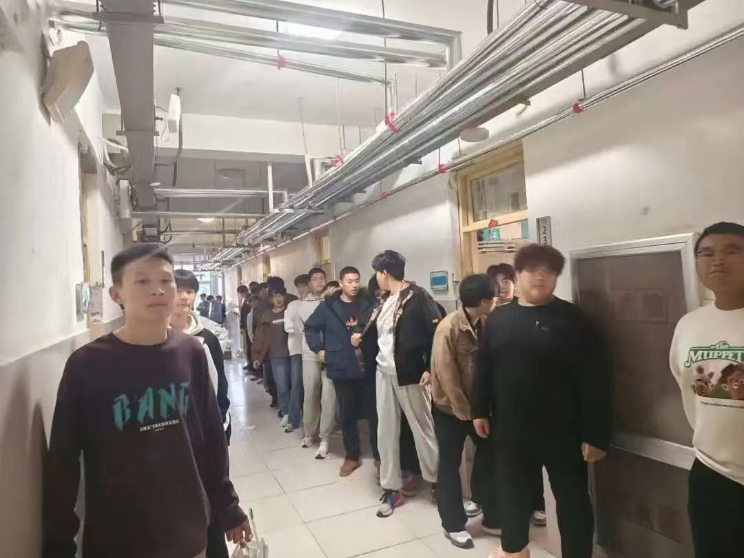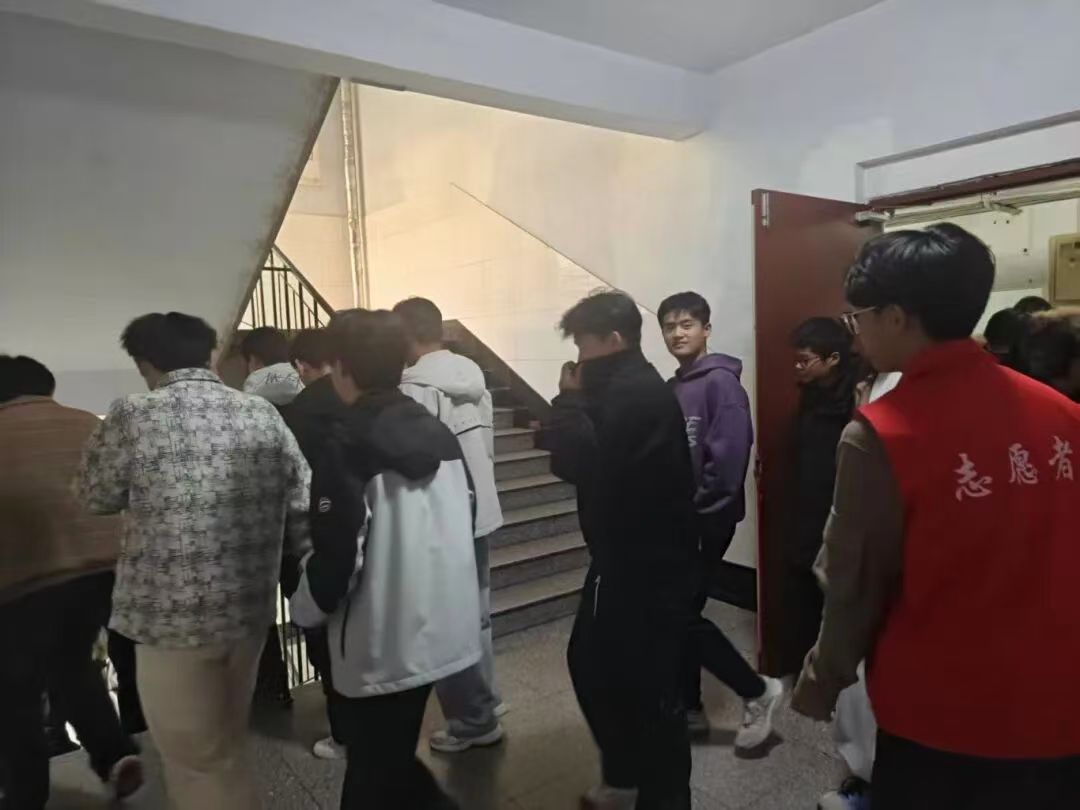 模拟火情信号发出后,演练正式开始。各宿舍学生迅速行动,按预设逃生路线,手捂口鼻、低姿快速移动,全程有序,无推挤慌乱情况,仅3分钟便全部安全抵达指定集合区域。工作人员随即清点人数、核对信息,确认无人员“遗漏”。