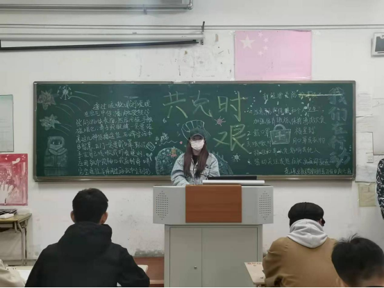 班会开始,各班负责人认真给同学讲解关于疫情防控相关知识,并指导学生正确了解疫情的动态,远离谣言,相信科学,负责人带领全班同学一起讨论了与疫情相关的话题,强调特殊时期,非必要不出校,日常记得佩戴好口罩,远离人流密集场所,做好疫情防护工作等。各班学生紧扣“防疫”主题,广泛搜集材料,再加以绘画等,制作精美宣传板报,进行了大量的疫情知识宣传,使学生们清楚的认识到疫情防控,刻不容缓!