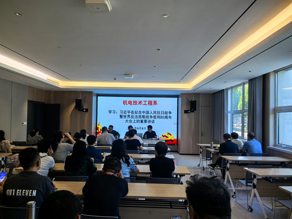 9月9日,机电技术工程系组织全系教师在智能制造大楼C203深入学习习近平总书记在纪念中国人民抗日战争暨世界反法西斯战争胜利80周年大会上的重要讲话精神。