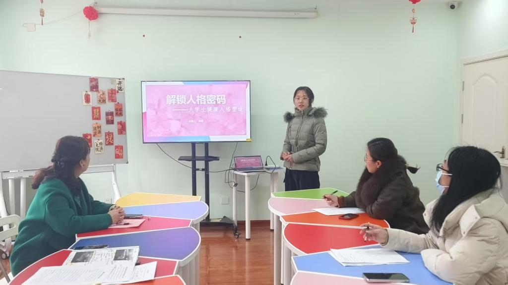 会议由华巧云主持,大学生心理健康教育中心专职教师宋恩赐、常琪、唐梦真,依次汇报自身在大学生心理健康教育专业委员会举办的精神分析理论与实践的专业培训和我校举办的数智化赋能教学高质量发展培训中的收获与感悟。汇报过程中,张丽同各位专职教师共同探讨培训中所学所感,鼓励青年教师不断精进专业技术技能,多多积累储备,以更加饱满的状态投身我校新学期心理健康教育工作。