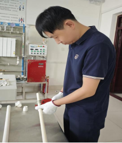 踏入实训现场,各类水电安装工具整齐列队,管道、线路等材料摆放得井井有条。建筑工程系的教师们迅速切换身份,从三尺讲台的授业者化身为专注实操的 “工匠学徒”。他们手持工具,全神贯注地投入到水电安装的各个环节中。