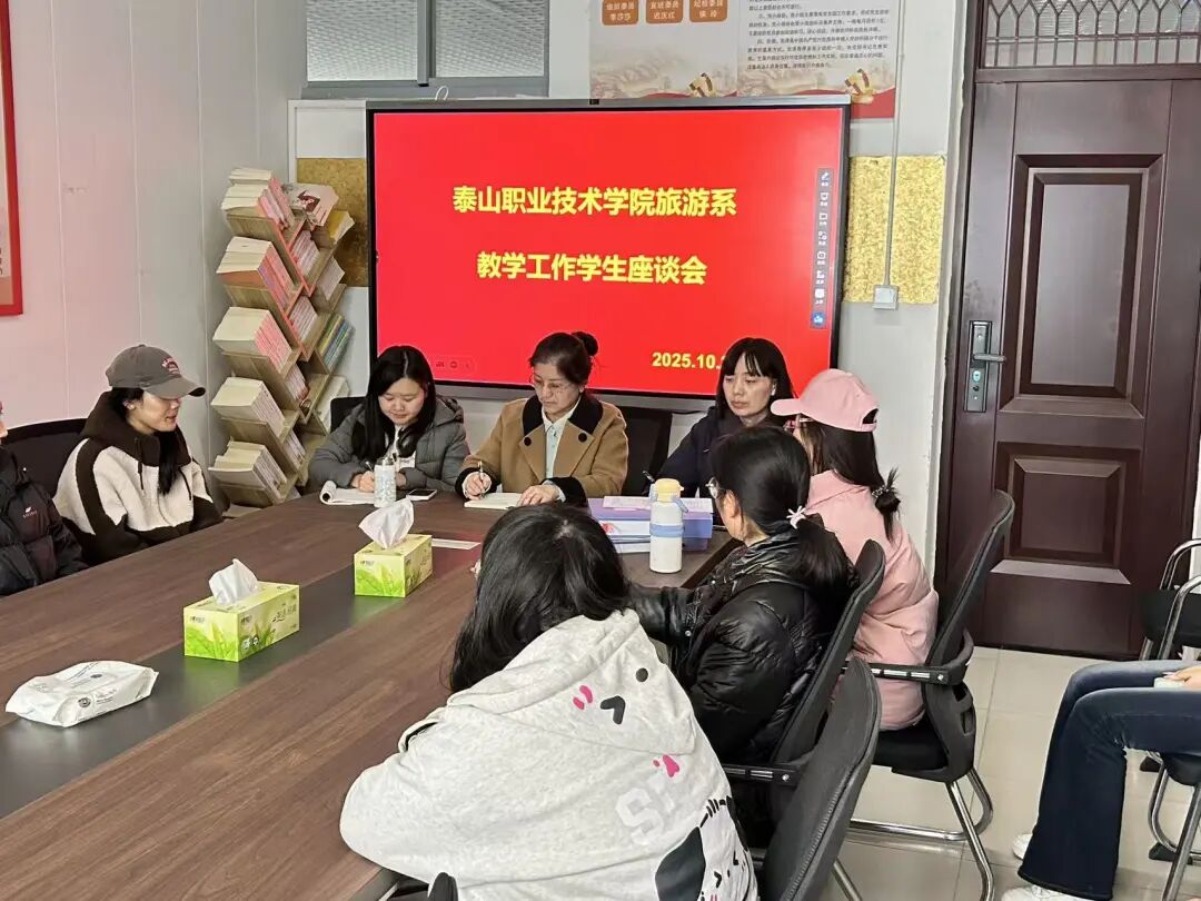 为深入把握学生需求,强化教学运行规范,推动教学质量持续提升,2025年10月27日,旅游系在明志楼会议室召开了“旅游系教学工作学生座谈会暨教学反馈交流会”。旅游系教学主任李莎莎、教学科科长王文彬、教学科副科长迟庆红与系学生会学习部成员、全体在校班级学习委员共同参加了本次会议。